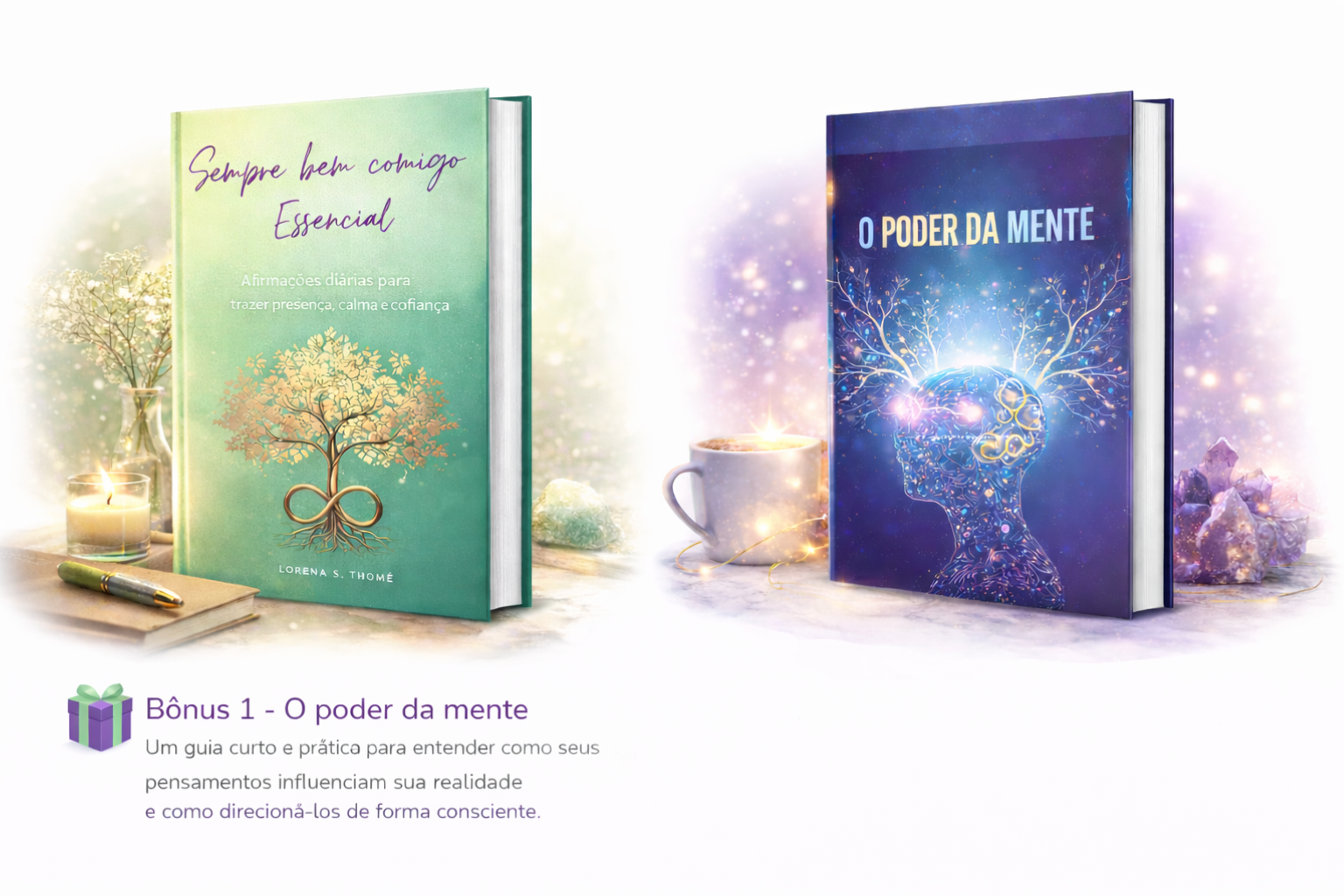 O Sempre bem comigo é um guia de afirmações positivas, organizado por categorias, criado para ser lido, sentido e vivido.
